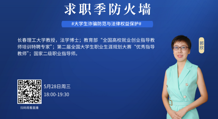 为深入贯彻落实国家关于高校毕业生就业创业工作的决策部署,积极响应吉林省关于服务地方高质量发展、促进大学生充分高质量就业的号召,切实提升我院研究生群体在求职就业关键期的风险防范意识与法律权益保护能力,永利集团3044官网欢迎您于2025年5月28日精心组织全体研究生同学,在线观看了由吉林省教育厅等部门联合主办的“2025年服务吉林高质量发展高校大学生就业创业系列直播课”——“求职季防火墙:大学生诈骗防范与法律权益保护”。本次课程特邀长春理工大学知名法学专家、法学博士郭欣教授倾情主讲,为即将步入社会的毕业生带来一场及时、权威、实用的安全防护指南。