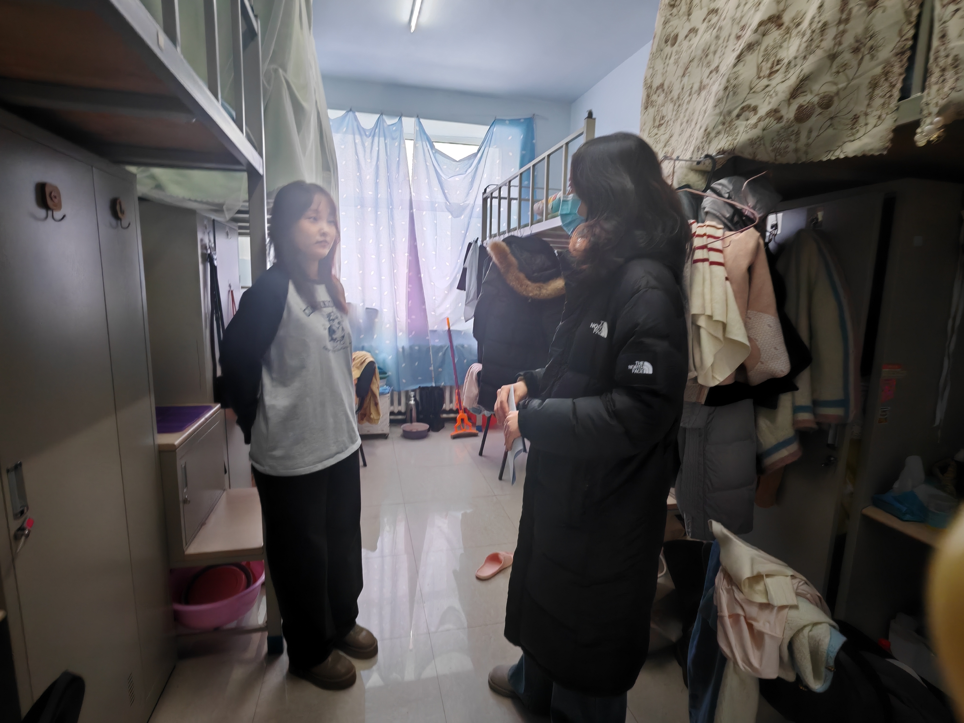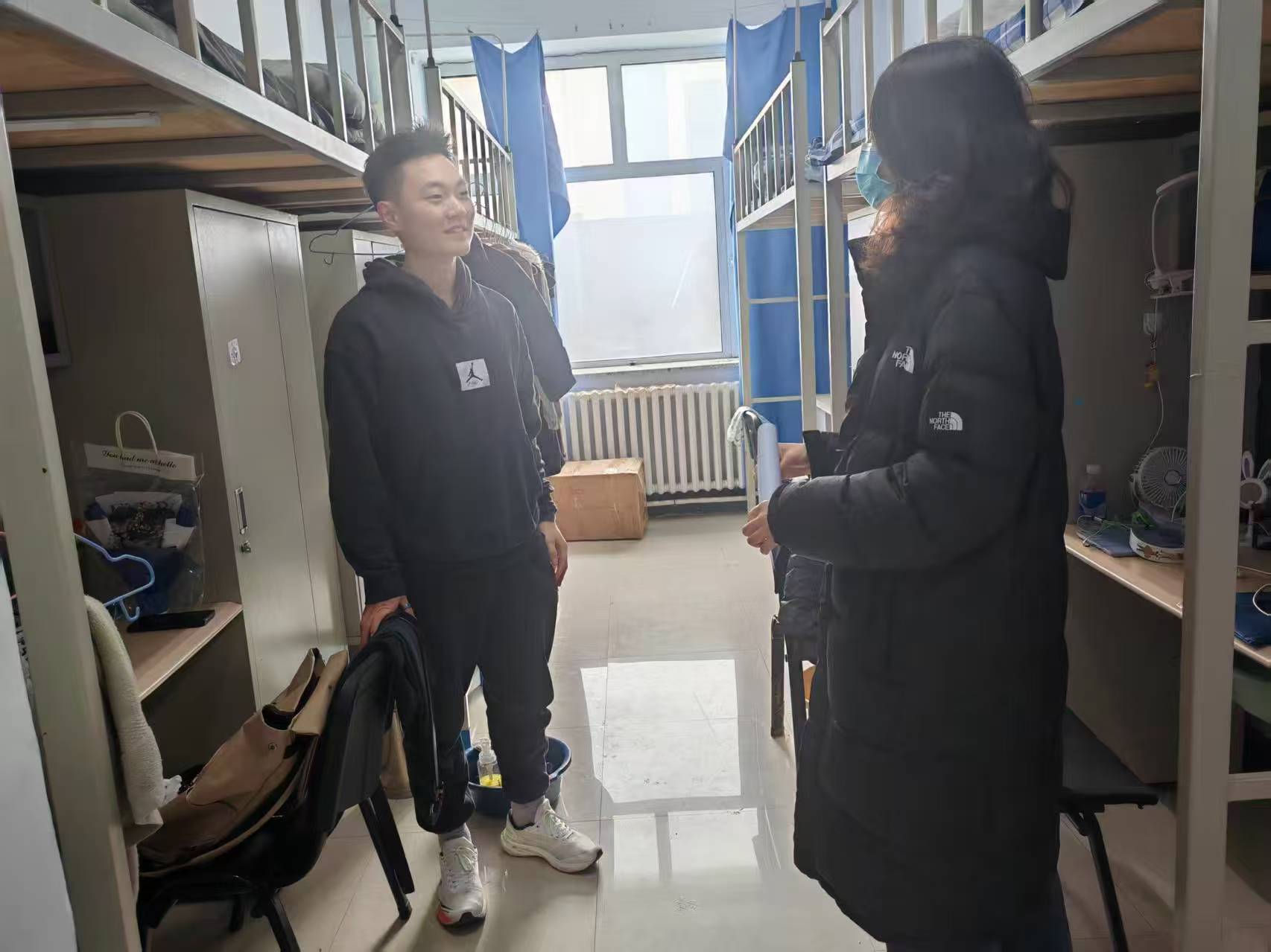 在宿舍检查中,工作人员重点查看电器使用、消防通道畅通情况及易燃易爆物品存放,纠正违规用电行为,发放寒假安全手册,提醒学生离校注意事项。同时,查寝时还孙佳钰老师强调要关注宿舍卫生状况,督促学生保持整洁,营造良好的居住环境。