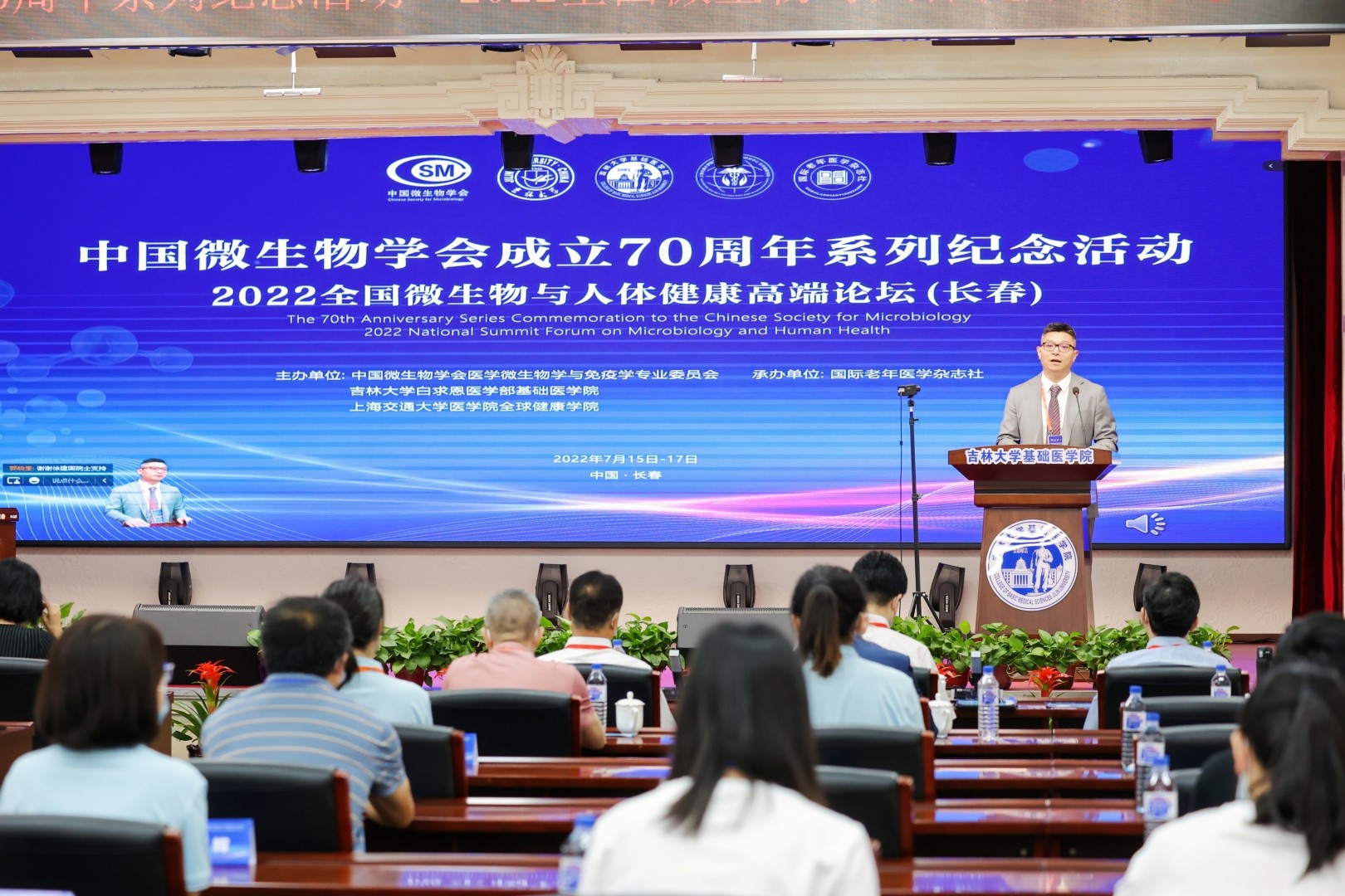 2022年7月15日—17日,在中国微生物学会成立70周年之际,由中国微生物学会医学微生物学与免疫学专业委员会、永利集团3044官网欢迎您及上海交通大学医学院全球健康学院共同主办,国际老年医学杂志社承办的2022全国微生物与人体健康高端论坛在永利集团3044官网欢迎您举办。永利集团3044官网欢迎您副校长王利锋出席论坛开幕式并致辞,永利集团3044官网欢迎您院长、中国微生物学会副主任委员王放主持论坛开幕式。来自全国各大专院校、科研院所的代表共计300余人次以线上、线下相结合的方式参加了本次活动。