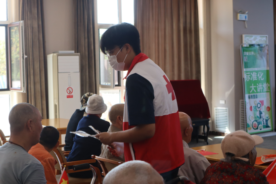 志愿者们还特意为老人们准备了专为老年人设计的动作简单舒缓、富有趣味性的低强度全身拉伸舒展操,现场与老人们互动。老人们在志愿者的鼓励和演示下积极参与,活动现场洋溢着轻松愉快的气氛。