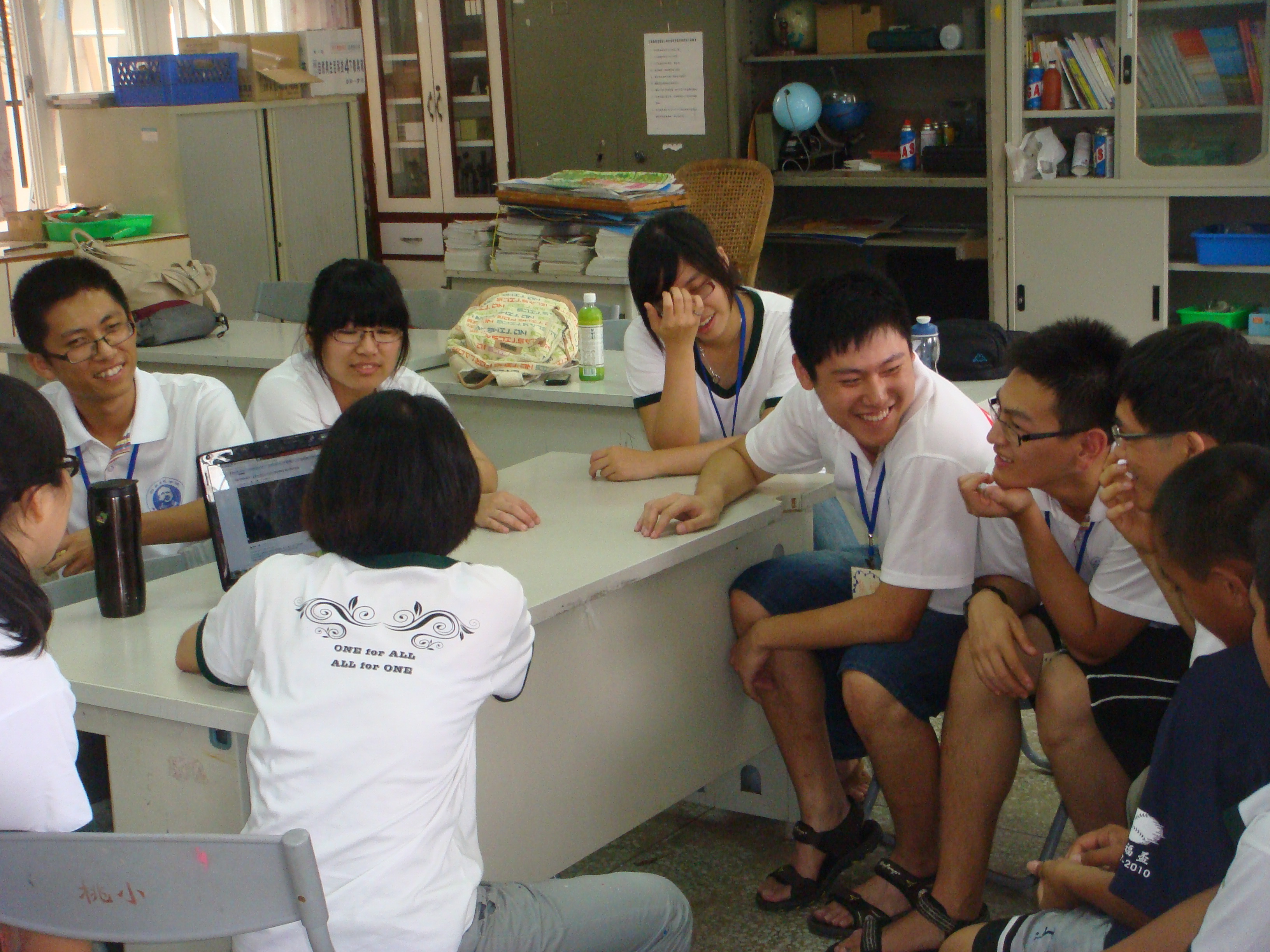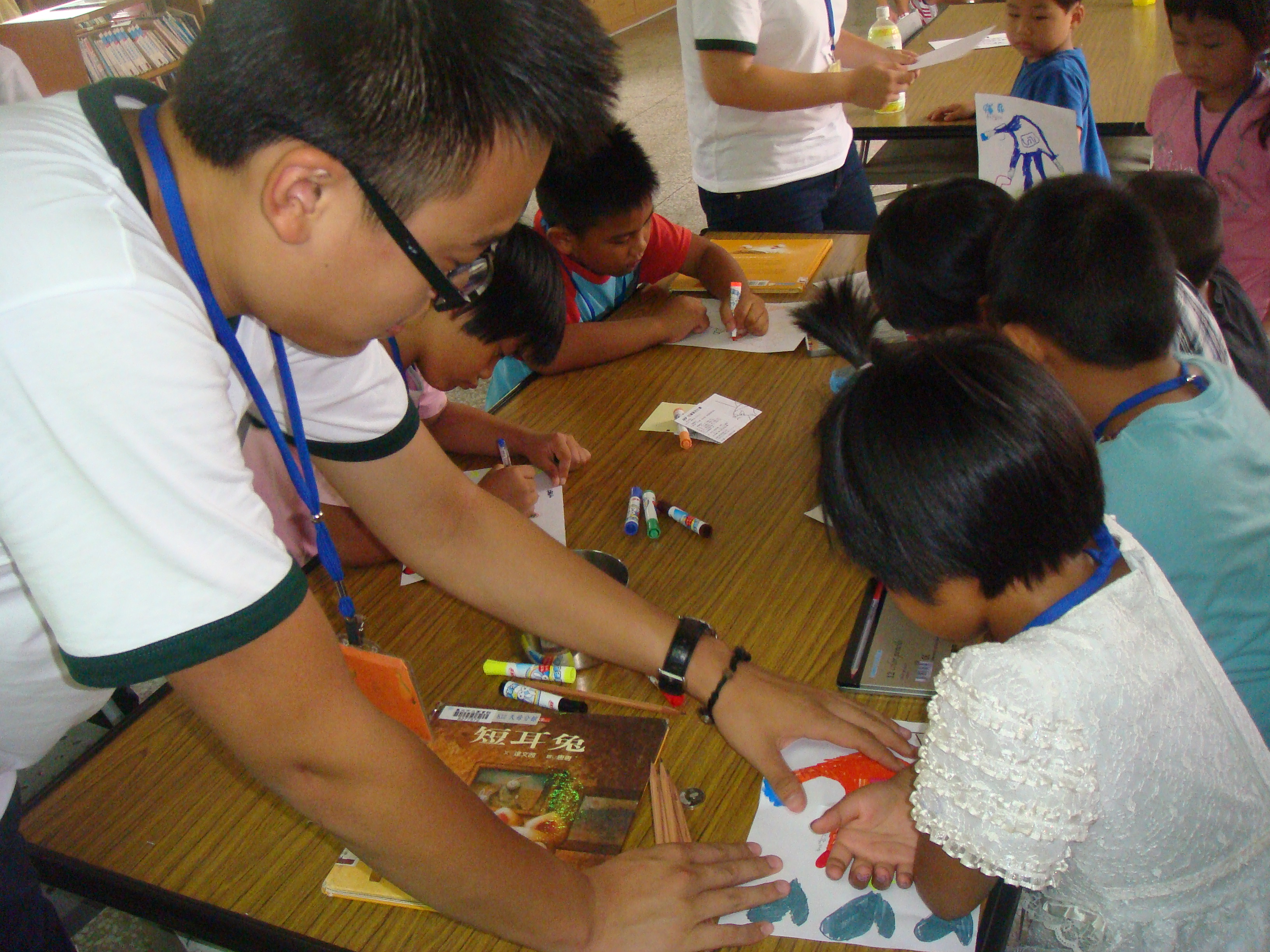 我是低年级阅读组的成员。尽管在台北就已经讨论过所有的内容,但我们还是重新研读了教案中的每一个细节,甚至还亲自排演了课程安排中的话剧以估计课堂时间。同台湾同学之间,不同的教育制度所体现出的不同的思维方式和生活态度在准备活动中就可见一斑。台湾的同学总是希望将小朋友分成四、五人的小组授课,而从小接受大班制教育的我们则在言行中透露出整体教学的概念;在面对对我们而言相对幼稚的少儿读本时,台湾的同学读书的语气富有感情色彩,他们通过自己的肢体动作夸张地表现出人物的各种情绪变化,我们可能会羞于以这种方式教授,但这种形式无疑是最接近小学生思维的。
